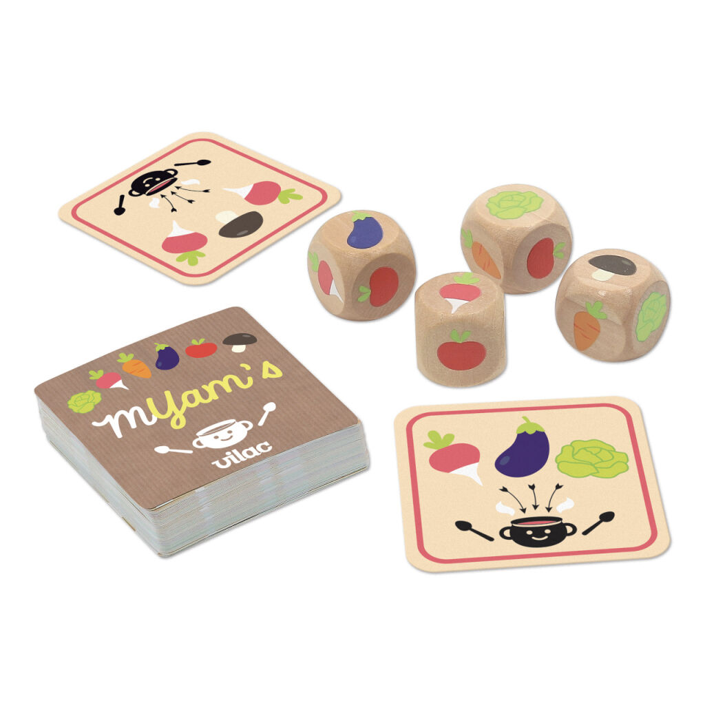 Nejen vegani si užijí tuto zábavnou zeleninovou hru! Lízněte si kartičku s receptem a pokuste se na kostkách hodit vyobrazenou kombinaci. Kdo bude mít více štěstí a shromáždí více karet? Díky jednoduchým pravidlům a obrázkům si zahrají i nejmenší, starší mohou hru okořenit i počítáním a jednotlivým druhům zeleniny přiřadit různou hodnotu.