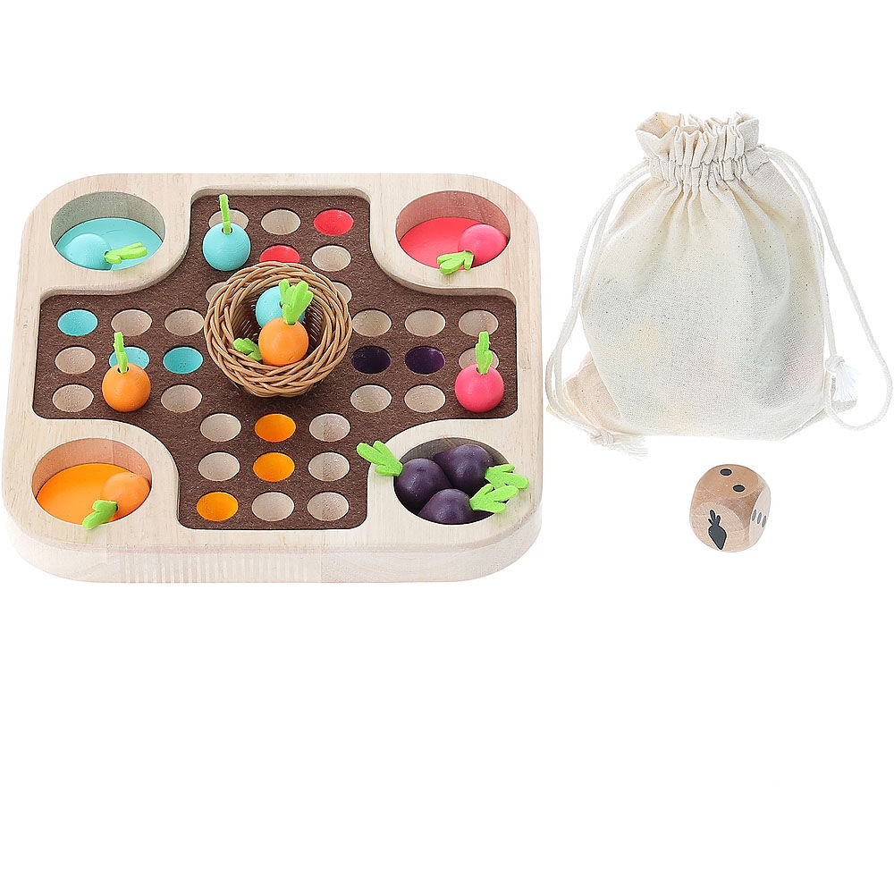 Kdo jako první dokončí sklizeň zeleniny do malého košíku? Tradiční hra člověče nezlob se v přírodním designu plná barevných mrkviček a košíčku ve tvaru hnízda uprostřed. Hra je přiupůsobena i nejmenším hráčům tak, aby byla zábavná a přirozená!